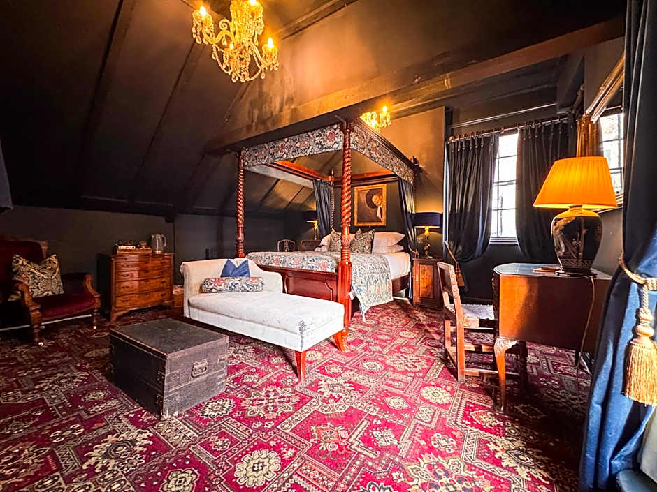 The Guy Fawkes Inn offers a variety of room options, including Executive Double Rooms, Double Rooms with Courtyard Views, Deluxe Double Rooms, Double Rooms with Four Poster Beds, and Suites with Double Beds. All rooms are non-smoking and can accommodate 2 adults and 1 child. The room sizes range from 108 sqft to 237 sqft. All rooms are equipped with 1 double bed.