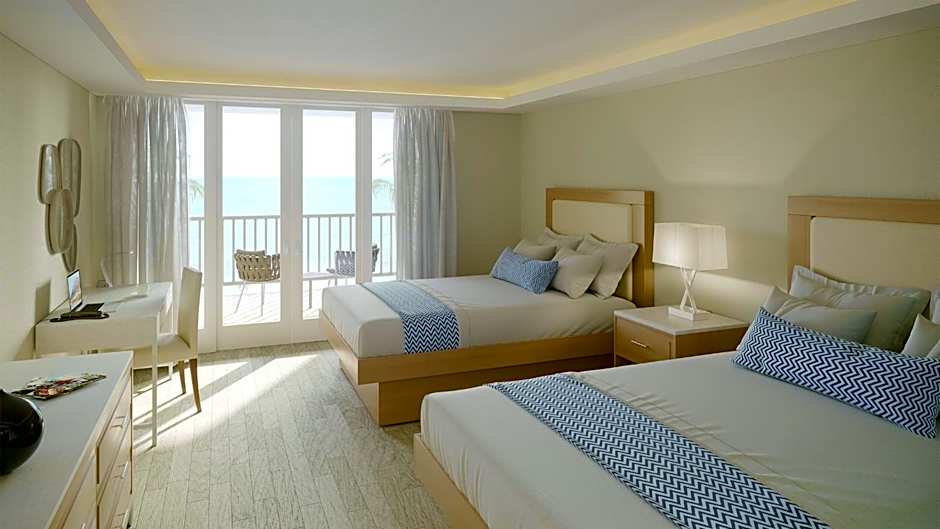 This completely renovated and spacious beachfront double hotel room features two queen beds, a private patio or balcony, a mini-fridge, a coffee maker, and more. Rates are based on 2 guests. A maximum of 4 guests can stay in this room.