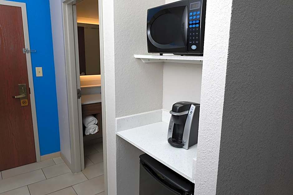 This accessible room features a microwave, small refrigerator, and flat-screen cable television. Coffee-making facilities are also included.