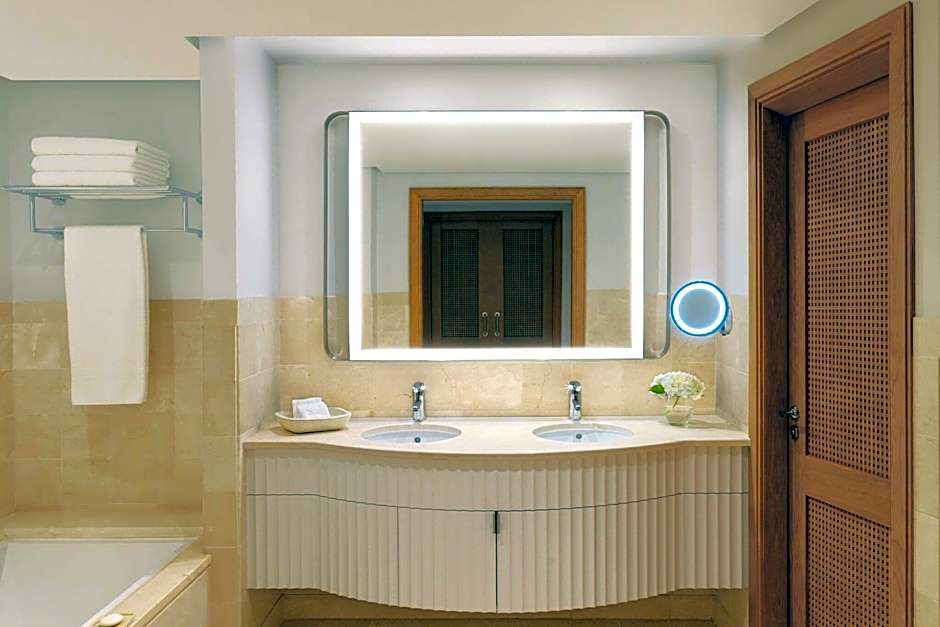 Junior Suite, 1 King Bed, Balcony, Resort View (Citadel) is 700 square feet and includes a double bed 131-150 width plus balcony, desk, hairdryer, tea and coffee making facilities , ironing set, safe, bathrobes, and slippers.