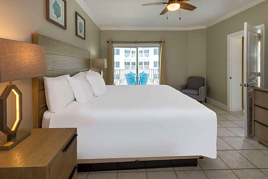 The Palm Beach Resort Orange Beach offers one-bedroom and two-bedroom apartments with ocean views. These non-smoking rooms are spacious, with the one-bedroom apartment measuring 603 sqft and the two-bedroom apartment measuring 700 sqft. The one-bedroom apartment accommodates up to 4 adults and 3 children, while the two-bedroom apartment accommodates up to 6 adults and 4 children. Both room types feature king size beds and a sofa bed.