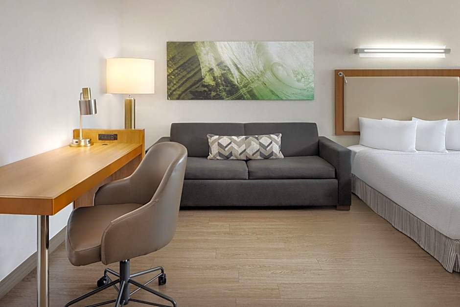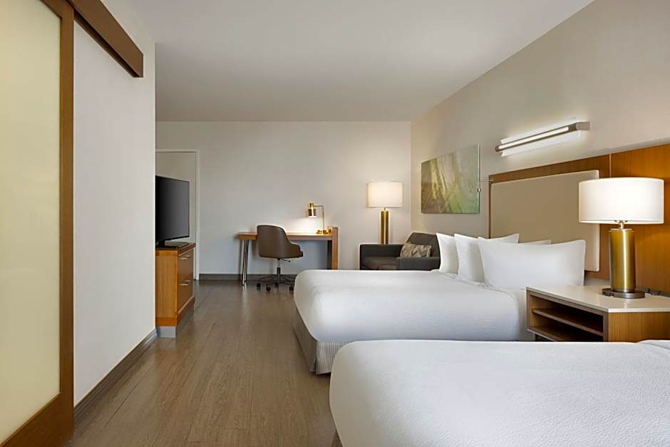 The hotel offers several types of rooms including suites and studios. The suites have options for either 2 queen beds or 1 king bed, with a sofa bed included in each. Some suites also have balconies and marina views. The studio rooms have a king bed and a sofa bed, and one of them is specifically designed for hearing accessibility. Smoking is not allowed in any of the rooms.