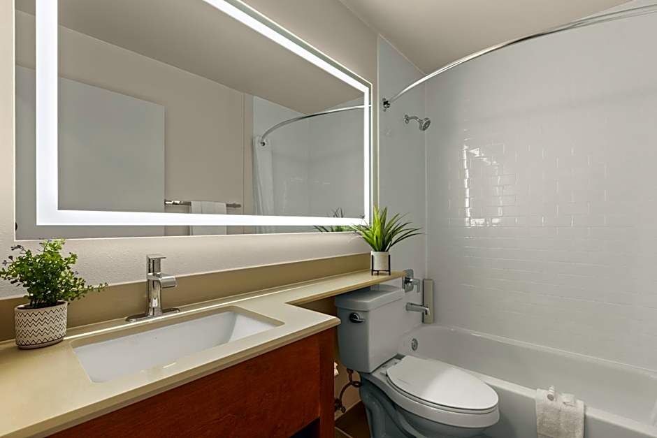 Providing free toiletries, this suite includes a private bathroom with a walk-in shower and a hairdryer. This wheelchair accessible suite features air conditioning, a seating area with a TV and a roll-in shower.