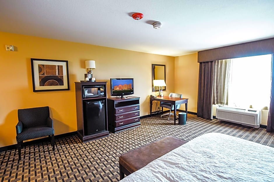 The hotel offers a variety of room types at the Hampton Inn & Suites Pine Bluff. These include King Studio Suites with a sofa bed, King Rooms with mobility/hearing accessibility, Queen Rooms with two queen beds, Double Rooms with two queen beds and a bath tub, and King Rooms with disability access. The rooms range in size from 301 sqft to 323 sqft and can accommodate between 3 and 4 adults, and 2 to 3 children. All rooms are non-smoking.