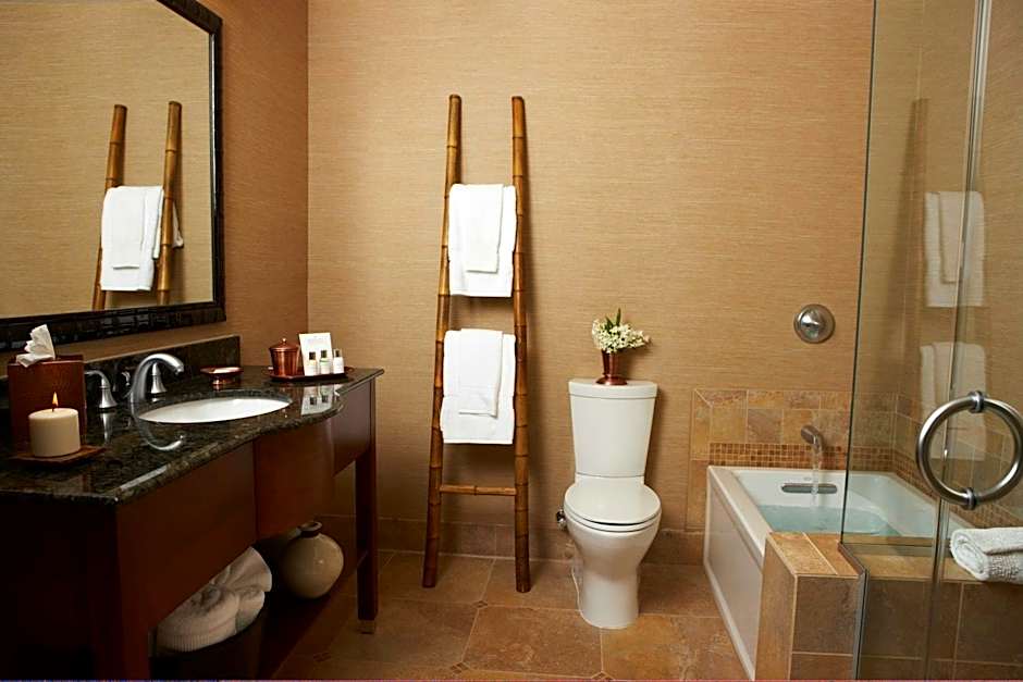 Overlooking the Pacific Ocean, this room offers a fireplace and refined wood furnishings. Shades of blue, cream and bright white accents are featured throughout. Bathrobes, a flat-screen TV and an iPod docking station are also provided.