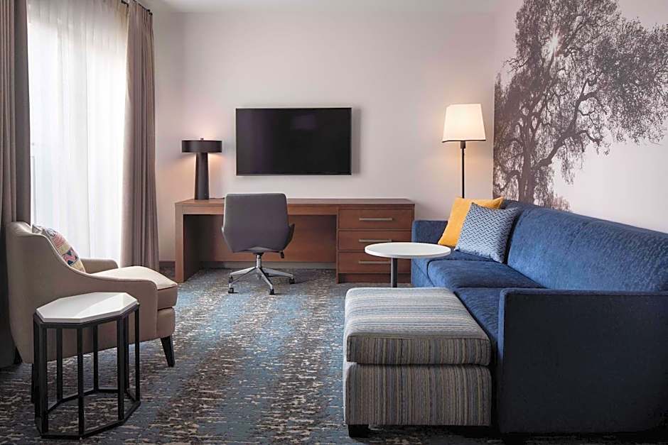 The hotel offers a variety of room types including 1 Bedroom Suites with a King bed and a Sofa bed, Studios with a King bed and a Sofa bed, King Studios with Sofa Bed - Hearing Accessible, King Studios with Sofa Bed and Courtyard View, 2 Bedroom Suites, and 1 Bedroom Suites with 2 Queen beds and a Sofa bed. The rooms range in size from 431 sqft to 710 sqft and can accommodate between 4 adults and 3 children to 6 adults and 5 children. Smoking is not allowed in any of the rooms.