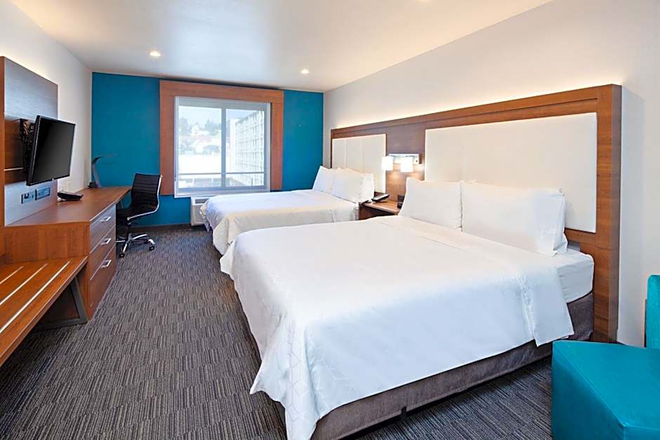 The Holiday Inn Express Hollywood Walk of Fame offers a variety of room types. There are family rooms with two queen beds or one king bed and a sofa bed, accommodating up to 4 adults and 3 children. There are also double rooms with either a king bed or a queen bed, accommodating 2 adults and 1 child. All rooms are non-smoking and range in size from 301 sqft to 527 sqft.