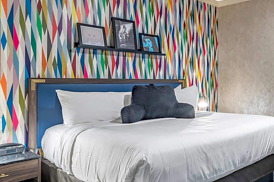 Room options range from standard rooms to suites, with configurations such as 1 queen or 2 queen beds, or 2 king beds in some suites; some suites feature relaxing bathtubs or a hot tub.