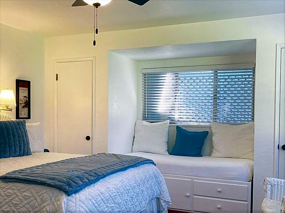 This room has a flat-screen TV, air conditioning and a queen bed along with twin bed for third person.