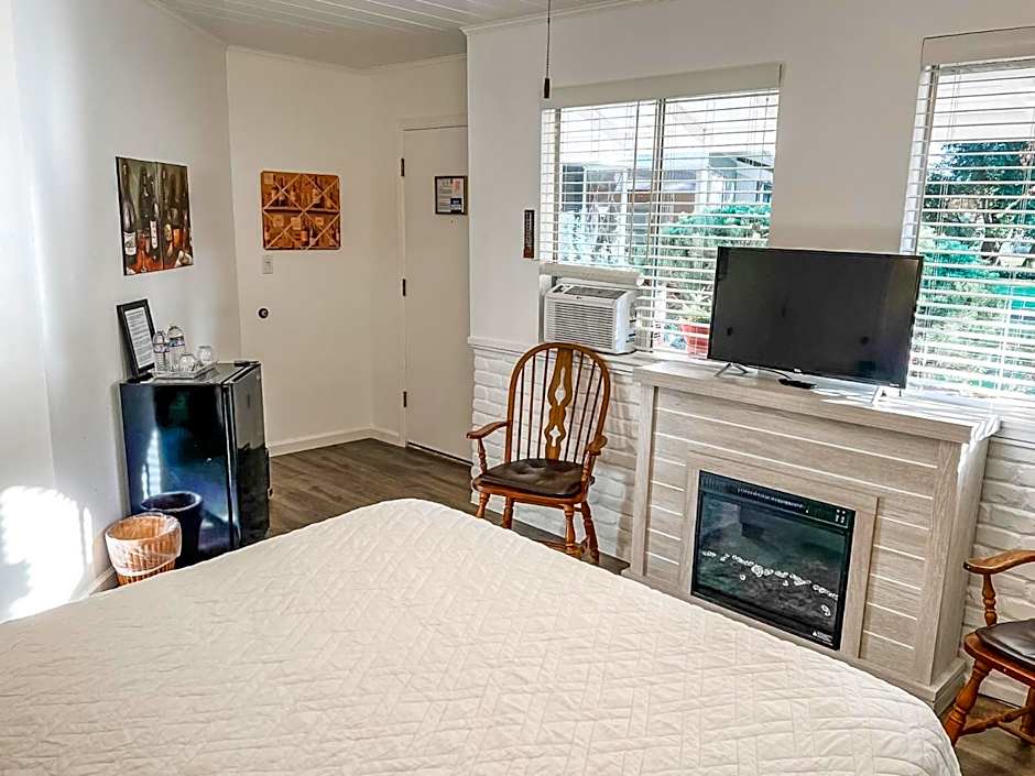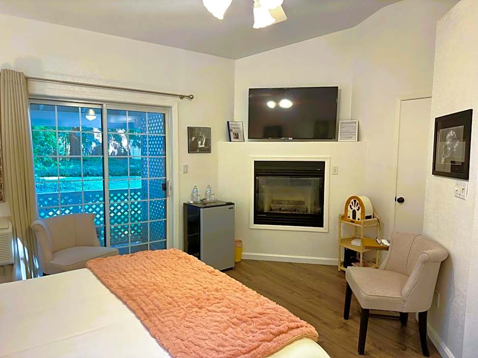 Indulge in the luxurious Cabernet Suite, boasting a spacious 614 sqft and featuring a relaxing spa tub, a picturesque garden view, and a private entrance. Unwind in style with a cozy fireplace and enjoy modern amenities such as a flat-screen TV and streaming services for a truly unforgettable stay.