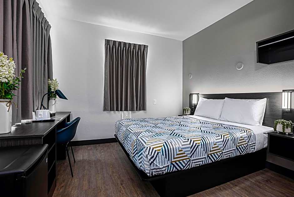 Great price for a one night stay and we were only planning to sleep in the room. The room was a good size for 2 people. Room only came with 2 bars of soap, 1 hand towel and 2 (small) bath towels. Usually motels have a bar of soap to use in the shower and shampoo/conditioner, but we didn’t have any in our room 😖 to top it of, the shower had an ear-ringing whistle when you turned the water on and it was unbearable to shower; especially if you have sensitive ears. There was also this weird gunk/burn mark on the floor next to our bed so we wondered if the floors were even cleaned prior to our arrival.