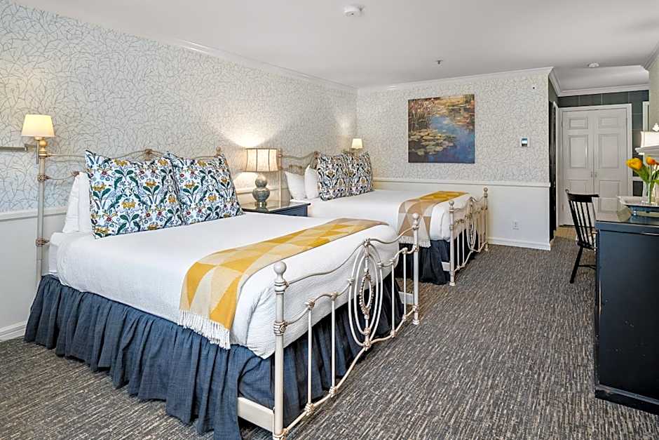 The hotel offers Deluxe Queen Rooms with Two Queen Beds in the Main Inn, which are family rooms that can accommodate 4 adults and 2 children. These rooms have a size of 398 sqft and do not allow smoking. The hotel also provides Queen Rooms in the Trellis Court, which can accommodate 2 adults and 1 child. These rooms have a size of 151 sqft and do not allow smoking. Additionally, the King Rooms and Deluxe King Rooms in the Main Inn can accommodate 2 adults and 0 children, have a King size bed, and do not allow smoking.