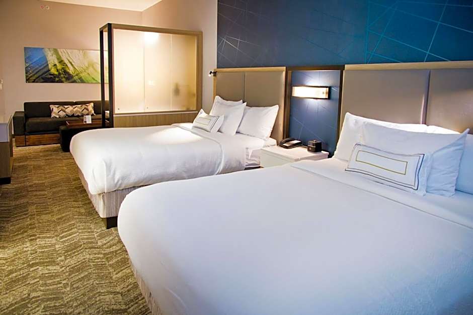 The SpringHill Suites by Marriott West Sacramento offers two types of suites. The King Suite with Sofa Bed can accommodate 3 adults and 2 children, has a non-smoking policy, and features a King size bed and a Sofa Bed. The Queen Suite with Two Queen Beds and Sofa Bed can accommodate 5 adults and 4 children, also has a non-smoking policy, and features two Queen size beds and a Sofa Bed. Both suite types have a room size of 388 sqft.