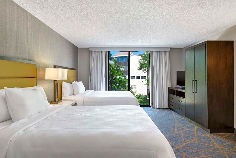 The Embassy Suites by Hilton Denver Tech Center North offers several types of suites. These include the Two Queens One Bedroom Suite, King Bed Suite, King Suite Accessible Tub, Two Queen Suite Hearing Accessible, and Two Queen Suite Accessible Roll In Shower. All rooms are non-smoking and have a room size of 215 sqft. The Two Queens One Bedroom Suite and Two Queen Suite Accessible Roll In Shower can accommodate up to 6 adults and 4 children, while the King Bed Suite and King Suite Accessible Tub can accommodate up to 4 adults and 3 children.