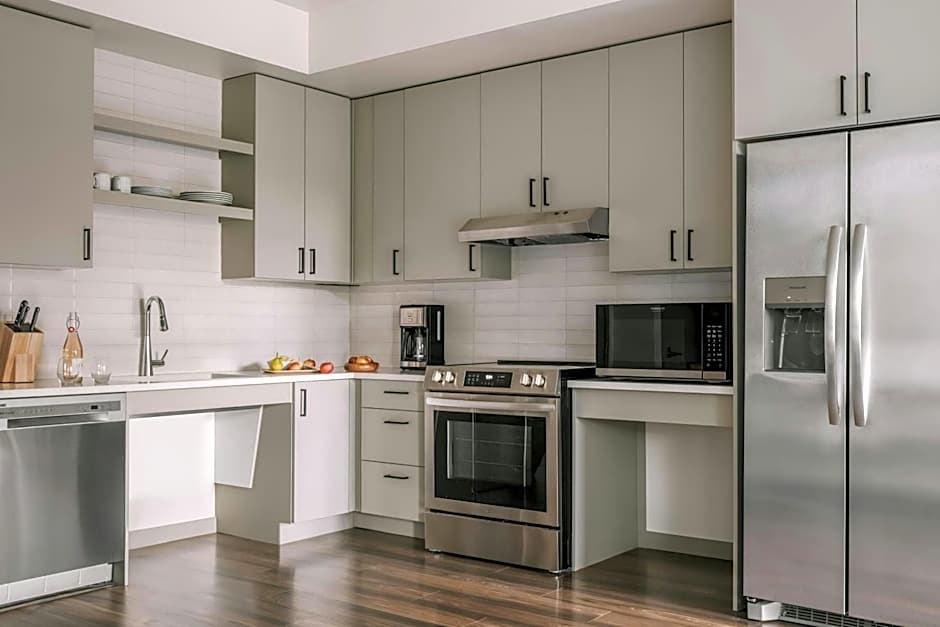Ideal for longer stays or groups, the on-site amenities make settling in a breeze: a kitchen for homemade meals, easy access to the pool and fitness center, air conditioning for comfort, and elevator access to upper floors for convenient city views. Explore Denver from this LoHi base and enjoy the blend of apartment living with hotel perks.
