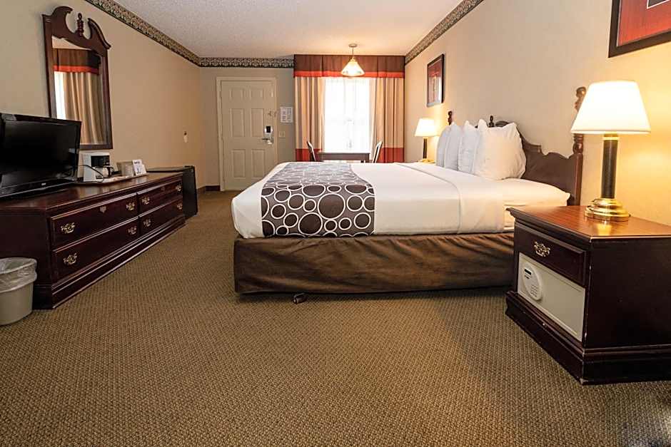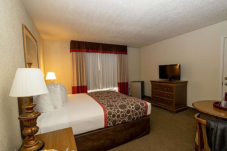 Room options range from King Rooms and Deluxe Queens to Executive configurations with two Queens, plus suites such as a Jetted Tub option. Prices start at $110, and payment is accepted with American Express, Visa, Mastercard, and Discover; cash is not accepted.