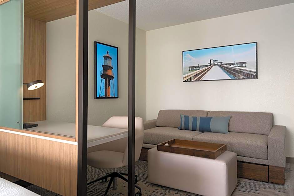 SpringHill Suites Fort Myers Airport offers a variety of rooms including Suites and Family rooms. The King Suite with Sofa Bed and the Double Room with Two Double Beds with Sofa Bed are both spacious, with the latter being slightly larger. Smoking is not allowed in any of the rooms. The King Suite with Sofa Bed - Hearing Accessible is also available for guests with hearing accessibility needs. All rooms accommodate multiple adults and children.