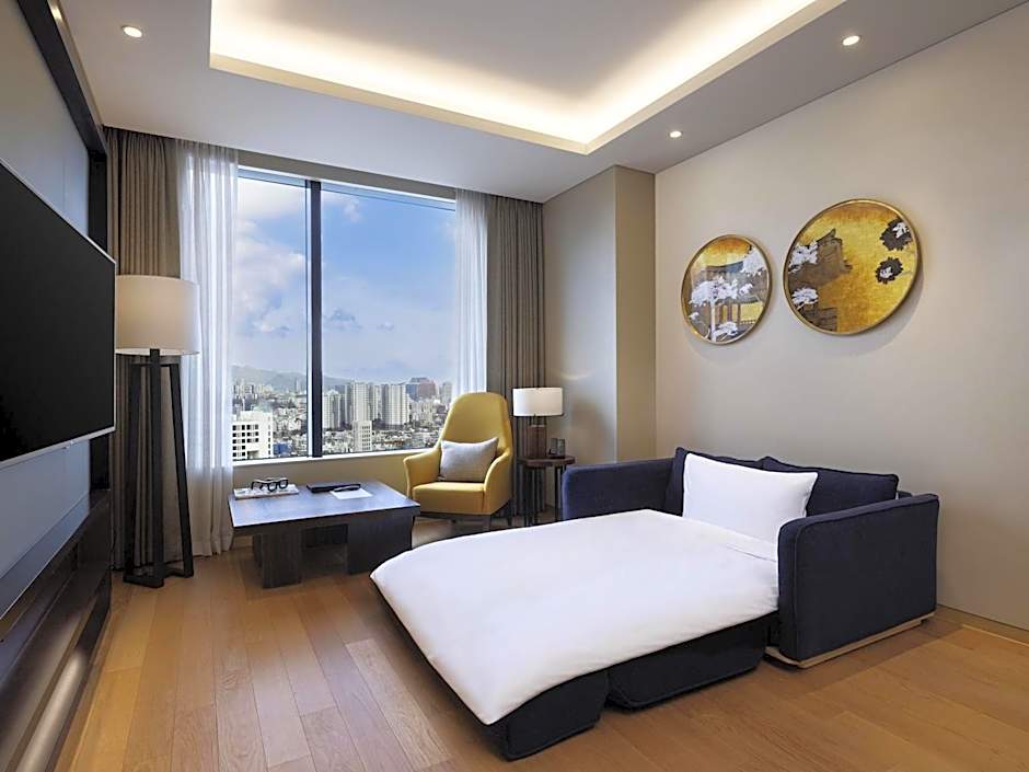 This city-view suite has a kitchenette with a stovetop, microwave, refrigerator, and tea- and coffee-making facilities. Egyptian cotton linens and goose-down duvets are provided in the bedroom, and the private bathroom includes a bathrobe and bath towels.