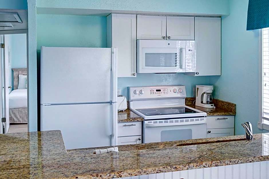 Being right on the beach was absolutely wonderful. The beach was big, spacious and only really busy on Saturdays. Beautiful view, and breeze on our little deck. I believe the 2nd floor was better than the 1st floor.. with the exception of the end beach front apartments. We also decided that this place was so much better than staying in a high rise apt.. We had our own front door, no elevator or lobby to drag our beach stuff through. The walk way with steps down to the beach was right next to our building. When out on the beach it was easy and quick to run up to the apartment (multiple times a day). The 2/2 apartment was perfect, clean and comfortable, with a TV in each bedroom as well as the living area. Kitchen was equipped with absolutely everything we needed.. dishes, pots/pans, utensils, coffee maker, toaster, blender, baking pans, wine glasses, etc., etc... even a pizza cutter! Also had a broom and vacuum cleaner. We will definitely go back there. My Daughter & her family loved it as well.. and will be back.