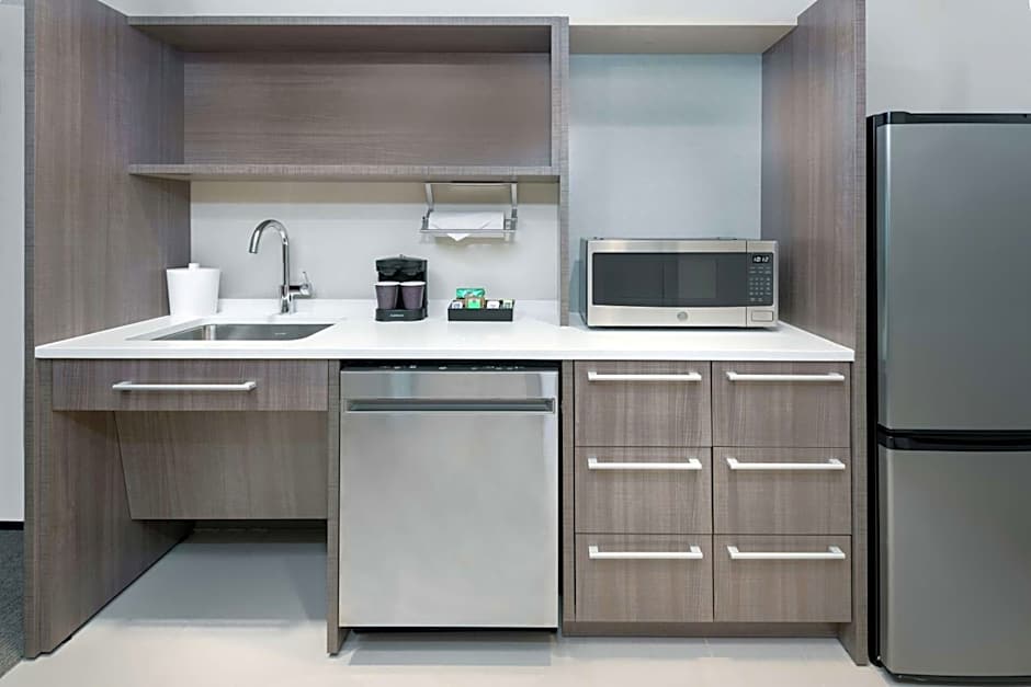 This suite offers a full kitchen and an open layout.