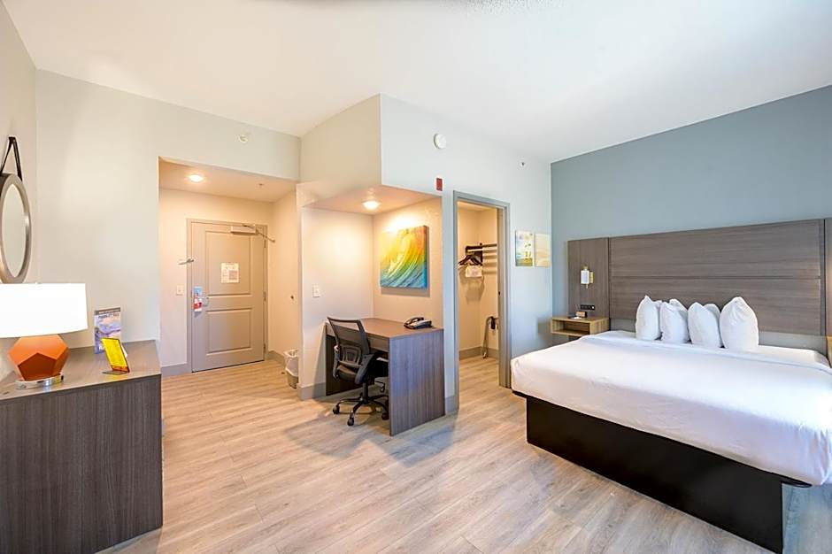 Choose from a selection of comfortable and spacious studio suites at Hawthorn Suites. Whether you're traveling solo, as a couple, or with a family, there's a room option to suit your needs. From the Queen Studio Suite with mobility access to the King Studio Suite, each room features modern amenities and ample space to ensure your comfort. With non-smoking rooms and beds ranging from queen to king size, you'll rest easy and wake up ready for another day of sun, sand, and adventure.