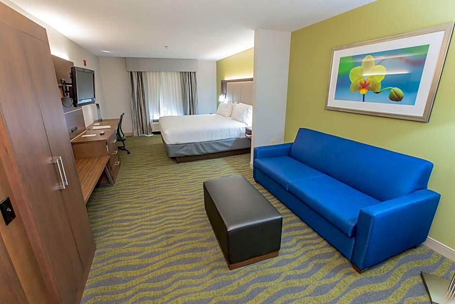 The Holiday Inn Express Hotel & Suites McDonough offers a variety of room types including King Rooms, Standard King Rooms with Mobility Accessible Roll-In Shower, Standard Queen Rooms with Two Queen Beds and Accessible Tub, King Suites with Sofa Bed, Standard Rooms, Queen Suites with Sofa Bed, and Queen Rooms with Two Queen Beds. All rooms have a non-smoking policy. The rooms range in size from 323 square feet and can accommodate between 2 to 6 adults, with additional space for children. The beds available include King Size, Queen Size, and Sofa Beds.