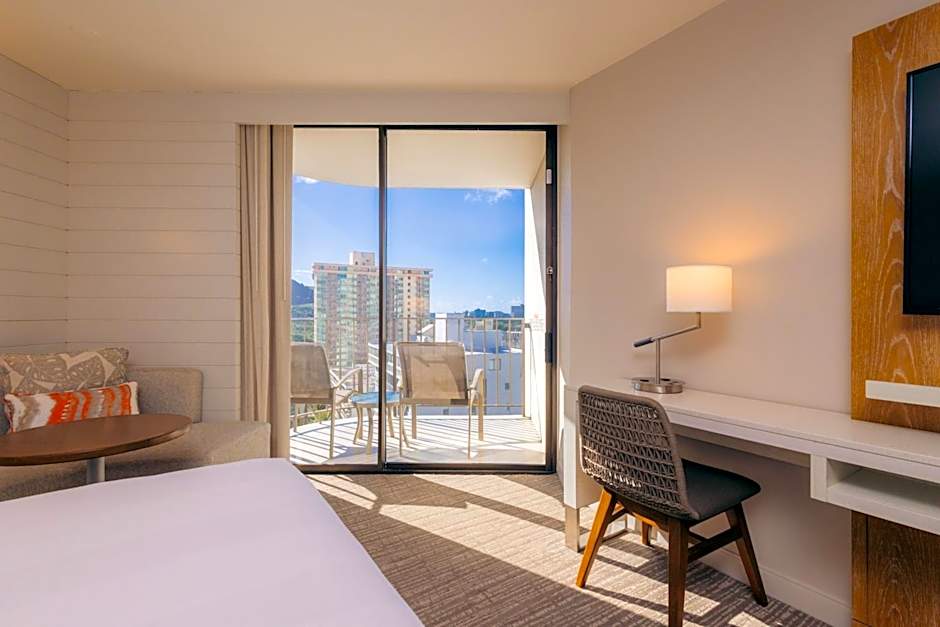 This room features Diamond Head and ocean views from a private balcony. A flat-screen TV, compact fridge and coffee machine are also provided.