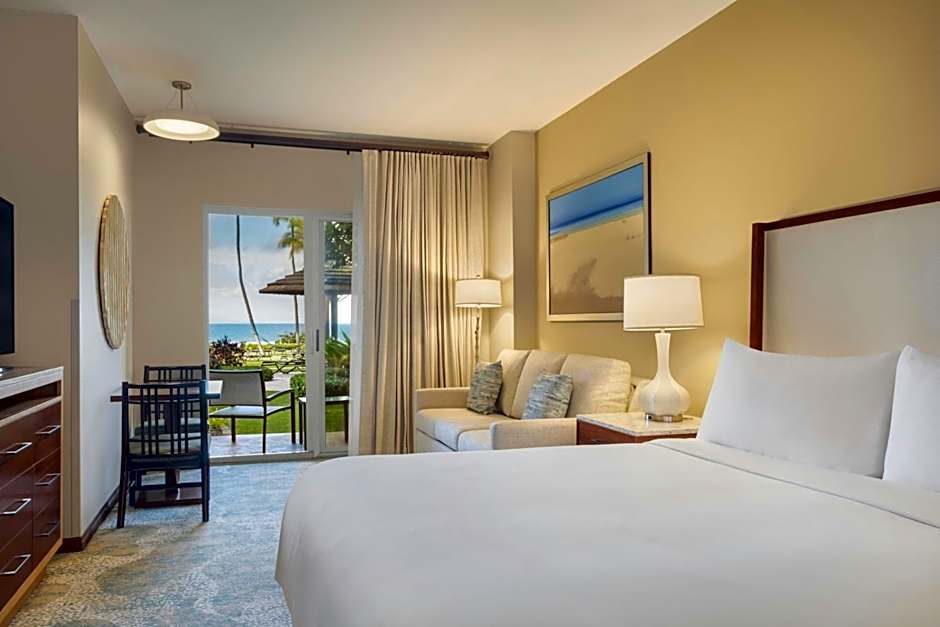 The hotel offers a variety of room types including One-Bedroom Villas with Ocean or Garden Views and King Rooms with Ocean or Island Views. The rooms can accommodate 2 adults and 1 child, or in the case of villas, 4 adults and 3 children. The bed sizes range from King size to Sofa Bed, with room sizes varying from 398 sqft to 797 sqft. Smoking is not allowed in any of the rooms.