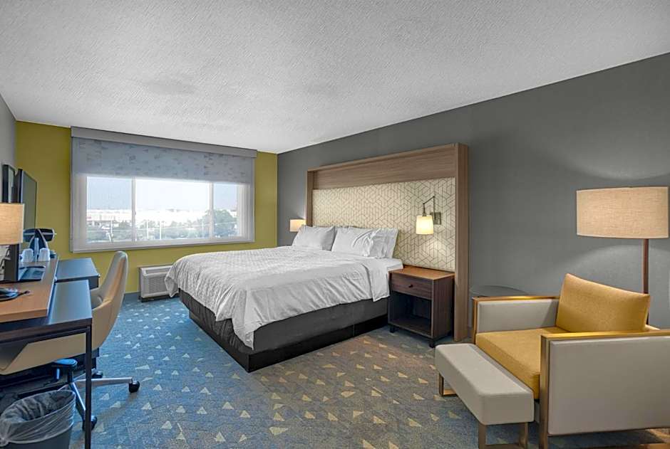 The Holiday Inn Chicago Midway Airport S offers a variety of room types. They have King Rooms with mobility accessible tubs, Standard Queen Rooms with two Queen beds, Rooms selected at check-in, Queen Rooms with two Queen beds and mobility accessible tubs, and King Rooms. All rooms at the hotel are non-smoking. The rooms accommodate 2 adults and 1 child, except for the Standard Queen Rooms which can accommodate 4 adults and 3 children. The bed sizes range from King size to Queen size.