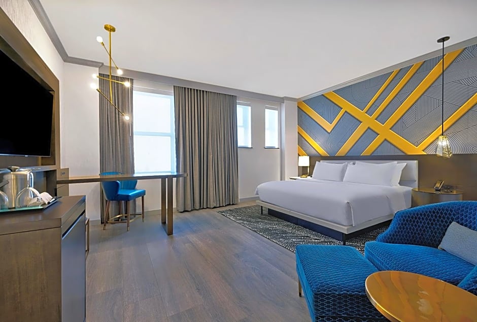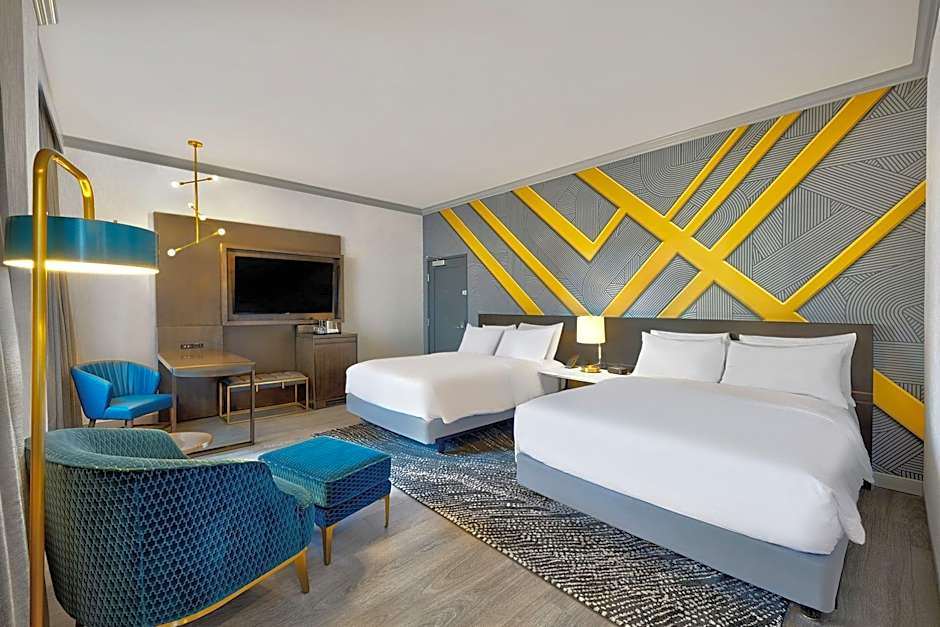 Le Méridien St. Louis Downtown offers Double Queen Rooms and King Rooms. The Double Queen Rooms have 377 sqft of space and can accommodate up to 4 adults and 3 children. They feature 2 Queen size beds and are non-smoking. The King Rooms also have 377 sqft of space and can accommodate 2 adults and 1 child with 1 King size bed. They are also non-smoking.
