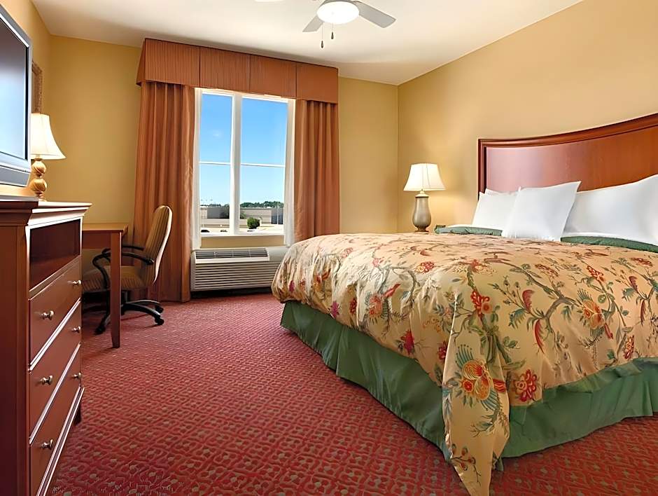 The hotel offers a variety of rooms, including King Studios, King Suites, and One-Bedroom King Suites. All rooms are non-smoking and can accommodate up to 5 adults and 4 children. Bed sizes range from King size beds to Queen size beds. Some rooms also have accessibility features like roll-in showers or accessible bathtubs.