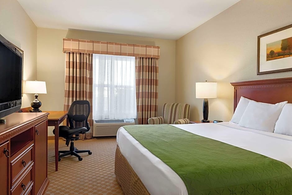 Choose from a variety of well-appointed rooms at Country Inn & Suites. The Studio King Suite is perfect for couples, offering a spacious 388 sqft of living space. Families will feel right at home in the Queen Room with Two Queen Beds, which accommodates up to four adults and three children. If you're seeking a more luxurious stay, opt for the One-Bedroom Suite with Two Queen Beds and Sofa Bed, which can accommodate up to nine guests. All rooms are non-smoking and provide amenities such as air conditioning, free toiletries, and comfortable beds to ensure a comfortable and restful stay.