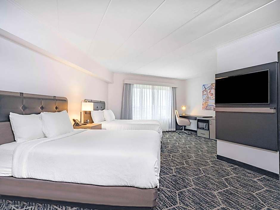 La Quinta by Wyndham Chicago O'Hare Airport offers various types of rooms. These include Business Queen Rooms with two Queen beds, King Rooms with Roll-in Showers, Queen Rooms with two Queen beds, Business Rooms with two Queen beds and Roll-in Showers, King Rooms with Bath Tubs, Queen Rooms with two Queen beds for hearing accessibility, Suites with two Queen beds, and King Rooms. All rooms are non-smoking and have different occupancy capacities and bed sizes.