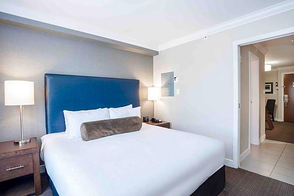 The hotel offers a King Suite, Queen Room with Two Queen Beds, and a King Room. The King Suite is a suite with a size of 474 sqft and a king-size bed. The Queen Room with Two Queen Beds is a double room with a size of 377 sqft and two queen-size beds. The King Room is also a double room with a size of 280 sqft and a king-size bed. All rooms accommodate 2 adults and 1 child and smoking is not allowed in any of the rooms.
