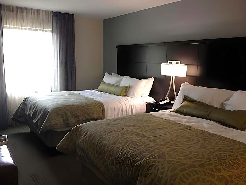 Staybridge Suites Schererville offers a variety of rooms including studio suites, one-bedroom suites, and two-bedroom suites. Occupancy ranges from single occupancy to groups of six. Rooms are non-smoking and feature either king or queen beds with some rooms including sofa beds.