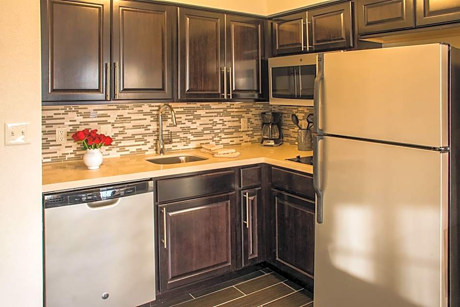 Featuring a kitchenette with a stove and dishwasher, this spacious suite also offers a separate living area with a flat-screen cable TV and sofa bed.