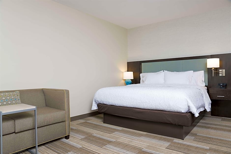 The Hampton Inn Westfield Indianapolis offers various types of rooms. The available options include King rooms with a sofa bed, Queen rooms with two Queen beds, King rooms with Peloton, and Executive King rooms. All the rooms are non-smoking and have different occupancy capacities. King rooms with a sofa bed and Executive King rooms can accommodate 4 adults and 3 children, while Queen rooms with two Queen beds can accommodate the same number of guests. The King room with Peloton, however, does not specify the number of beds or occupancy capacity.