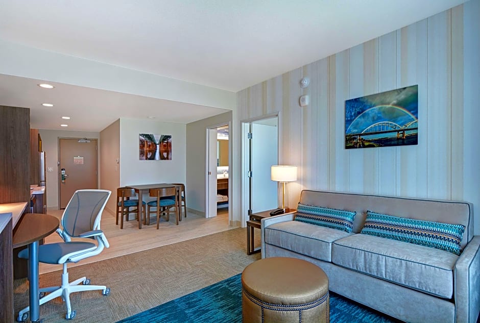 The hotel offers One-Bedroom King Suites and King Studio Suites, both non-smoking, with a room size of 301 sqft. These rooms accommodate 4 adults and 3 children, with 1 King size bed. The hotel also offers Queen Studio rooms with Two Queen Beds, both non-smoking and hearing accessible, non-smoking, or mobility accessible. These rooms have a room size of 301 sqft and accommodate 6 adults and 4 children, with 2 Queen size beds.