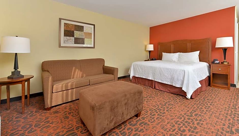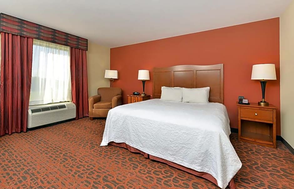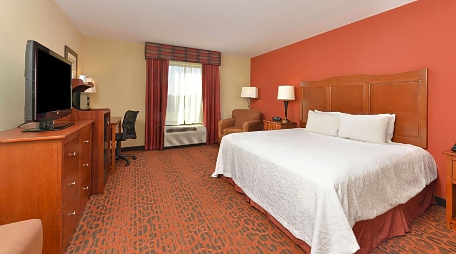 Hearing and Mobile Accessible with Roll-In Shower, Microwave, Mini-Fridge Enjoy your stay in this king room with hearing and mobile accessible roll-in shower that features our clean and fresh Hampton bed®. This room is equipped with a visual doorbell and visual telephone alert. Catch up on your favorite TV show with our 32-inch HDTV. Enjoy a hot drink from your in-room tea/coffeemaker. The room includes a microwave and mini-fridge to store your favorite late night snacks. The room also has a spacious work desk and free WiFi to let you catch up on work while traveling. In the bathroom you'll enjoy our fluffy towels, a WaterPik® showerhead and curved shower rod for added space and light.
