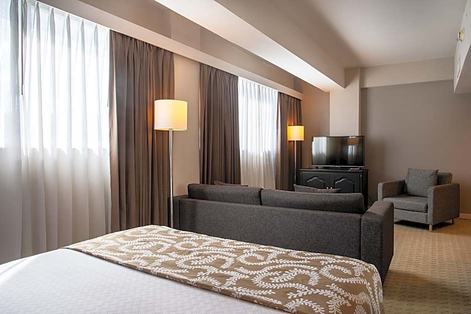 The hotel offers Queen Rooms with either one or two Queen beds. These rooms come in non-smoking and smoking options. The rooms are 291 sqft in size and can accommodate either 2 adults and 1 child or 4 adults and 3 children.
