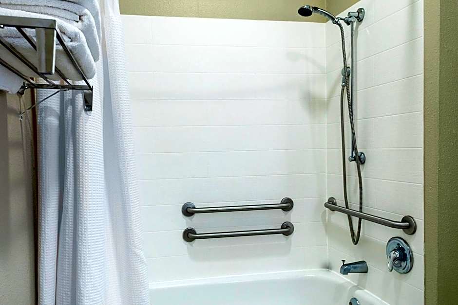 The suite has 1 bedroom and 1 bathroom with a shower and free toiletries. This wheelchair accessible suite features a tea and coffee maker, a seating area with a flat-screen TV and a roll-in shower. The unit has 2 beds.