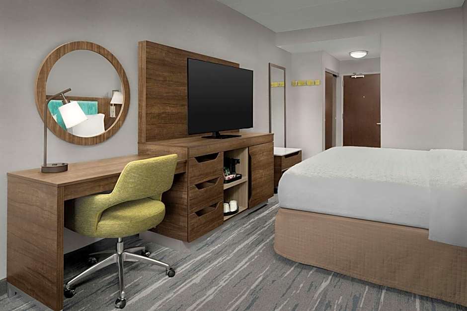 The Hampton Inn Haverhill offers a variety of rooms including King Rooms with roll-in showers, Premium King Rooms with sofa beds, Queen Rooms with two queen beds, and King Rooms with sofa beds. All rooms are non-smoking and have an average size of 301 sqft or 377 sqft. The rooms can accommodate either 3 adults and 2 children or 4 adults and 3 children, depending on the room type.