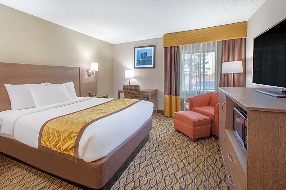 The Baymont by Wyndham Grand Rapids Airport offers a variety of room types including suites, family rooms, double rooms, and quadruple rooms. All rooms are non-smoking and range in size from 291 sqft to 538 sqft. The occupancy varies, with some rooms accommodating 2 adults and 1 child, while others can accommodate up to 5 adults and 4 children. Bed sizes include King and Queen, with some rooms offering multiple beds.