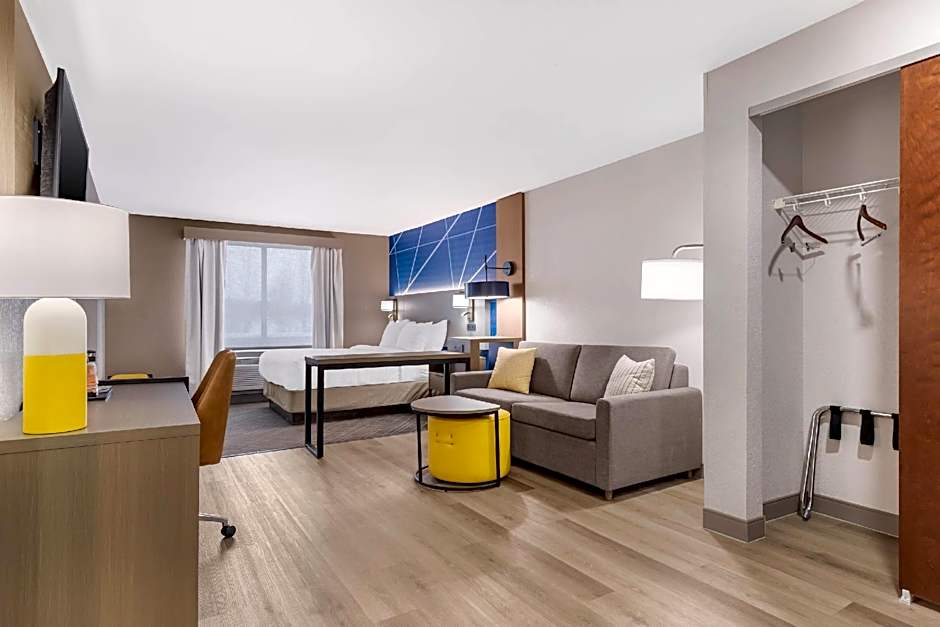 Featuring free toiletries, this suite includes a private bathroom with a bath, a shower and a hairdryer. The suite has carpeted floors, a seating area with a TV with streaming services, air conditioning, a tea and coffee maker, as well as heating.