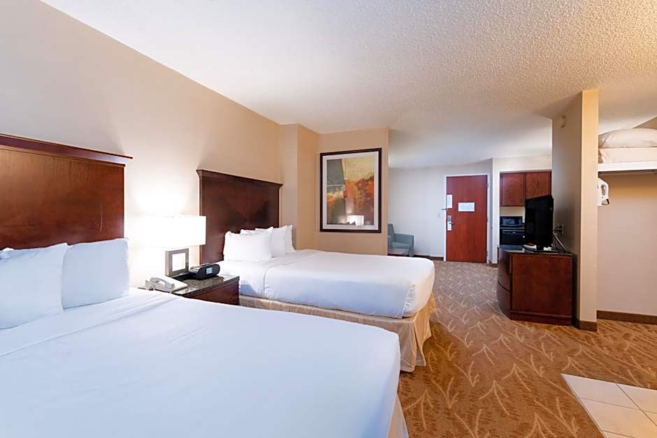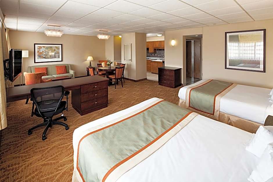 The suite's kitchenette, which features a refrigerator and a microwave, is available for cooking and storing food. This wheelchair accessible suite has a coffee machine, a seating area with a TV and a roll-in shower. The unit has 2 beds.