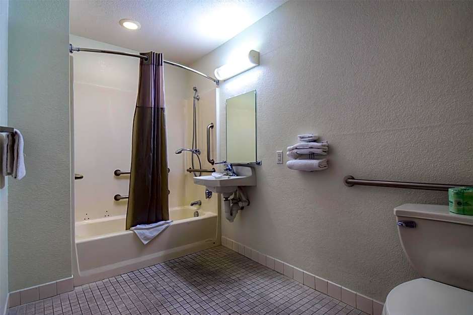 This room includes a roll-in shower and additional handicap accessible features.