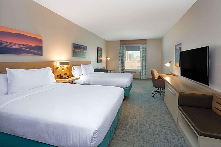 The Hilton Garden Inn Albuquerque Downtown offers a variety of rooms including a Queen Room with Two Queen Beds and Mountain View, a King Room with Sitting Area, and a Queen Room with Two Queen Beds and Sitting Area. These rooms can accommodate either 4 adults and 3 children or 2 adults and 1 child. Smoking is not allowed in any of the rooms. The Queen rooms feature two queen size beds while the King room has a single king size bed.