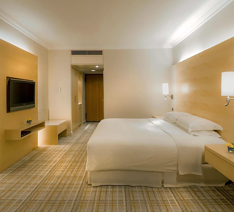 King Hilton Premium Room is 344 square feet and includes either a double bed 131-150 width or a king-size bed 150-183 width plus desk, satellite tv , cable tv, hairdryer, tea and coffee making facilities , ironing set, safe, bathrobes, and slippers.