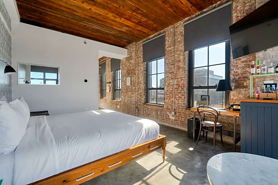 Located at the corners and other nooks of the building, these rooms retain the original historic industrial detailing, exposed brick walls and feature views of the surrounding Brooklyn neighborhood. The room has a king bed and is located between floors 2 and 5.