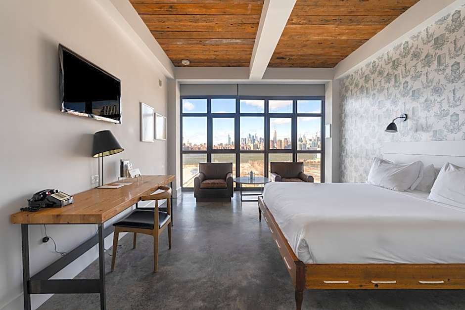 Located on the west side of the building, these rooms have views of the Manhattan skyline and floor-to-ceiling windows. They are located between floors 4 and 8 and feature 1 king bed.